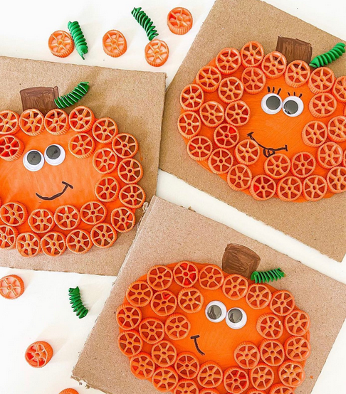 Kids of all ages can stop by the library to make festive fall pumpkins using dried pasta!