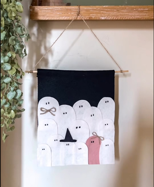 Decorate for spooky season by making a felt banner featuring cute, friendly ghosts!